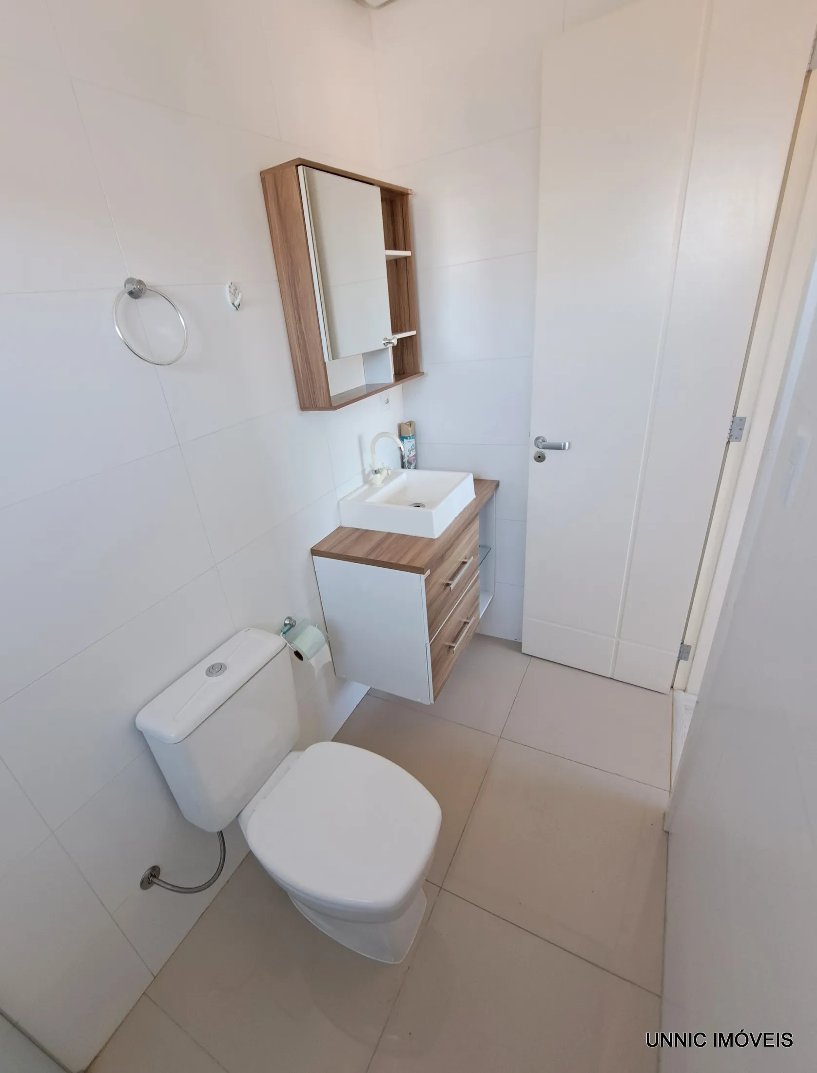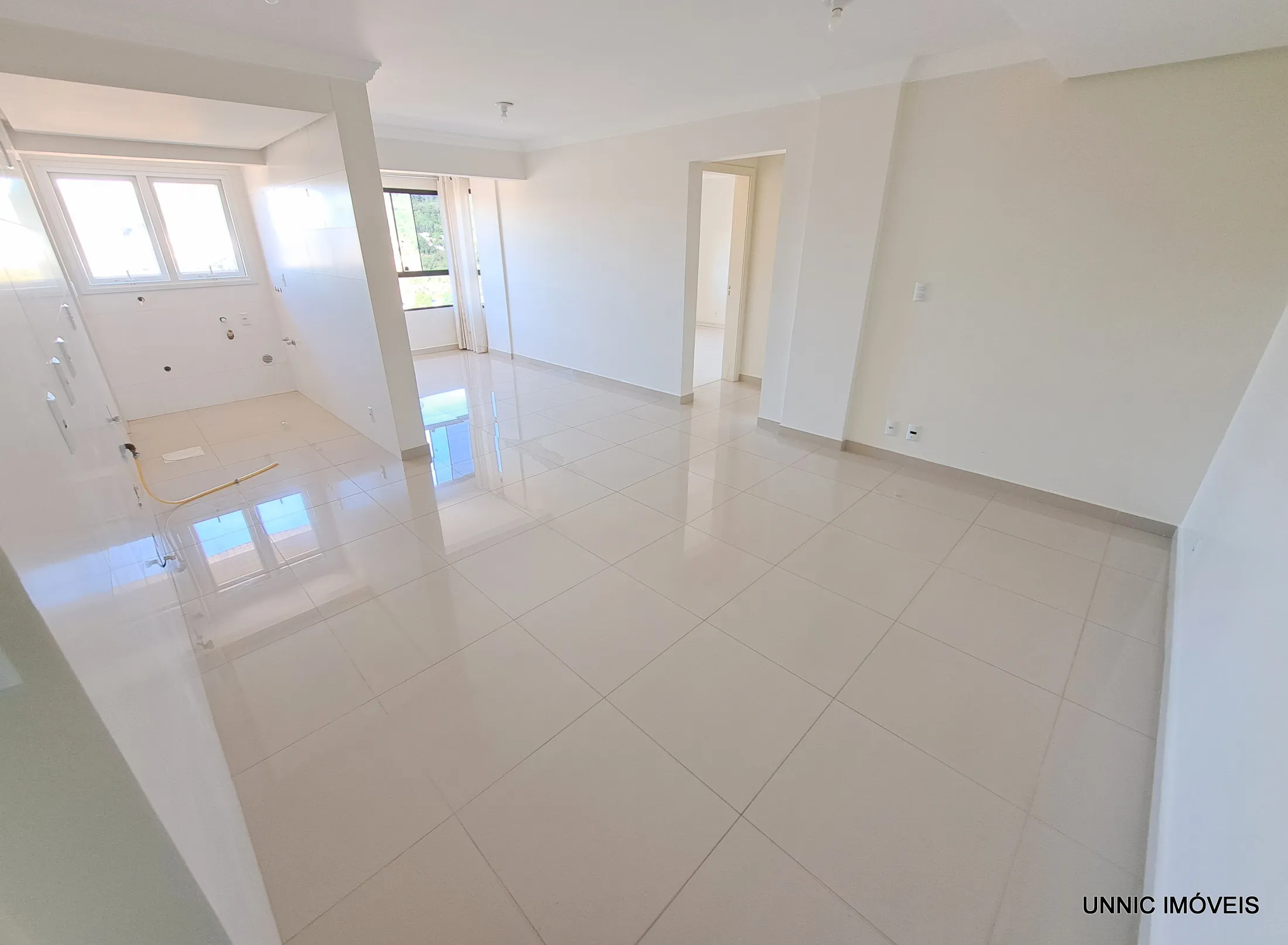 Apartamento com área privativa de 76,74m², 2 suítes, sala de estar e jantar integrado com sacada, lavabo, cozinha com churrasqueira, lavanderia, 1 vaga de garagem.