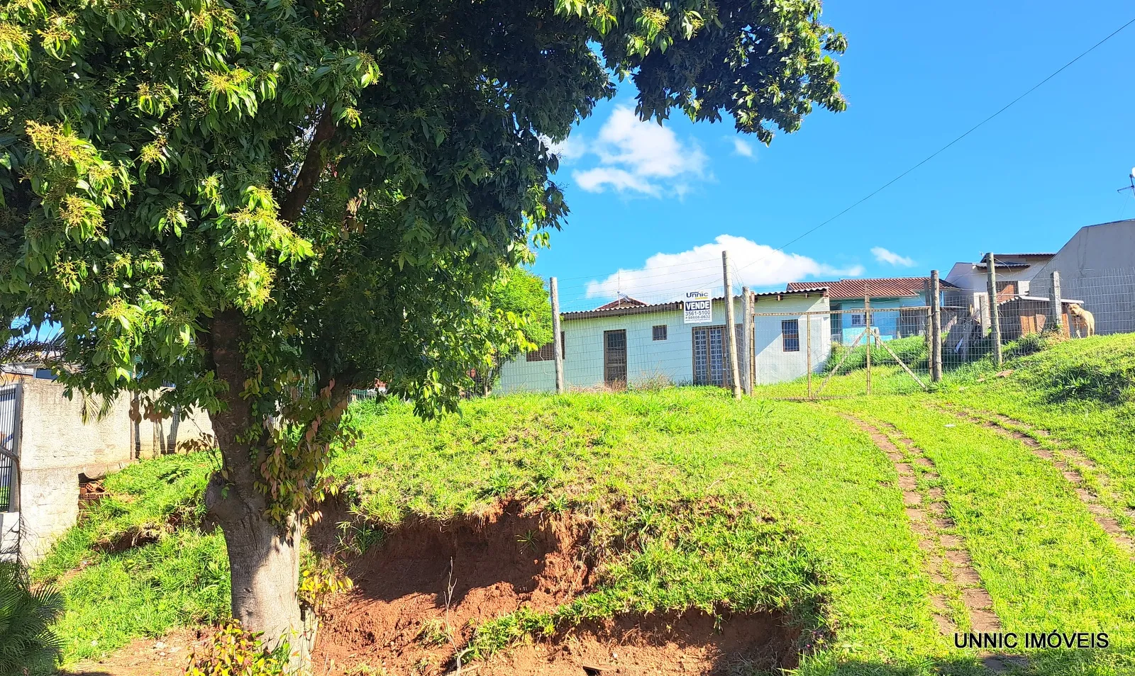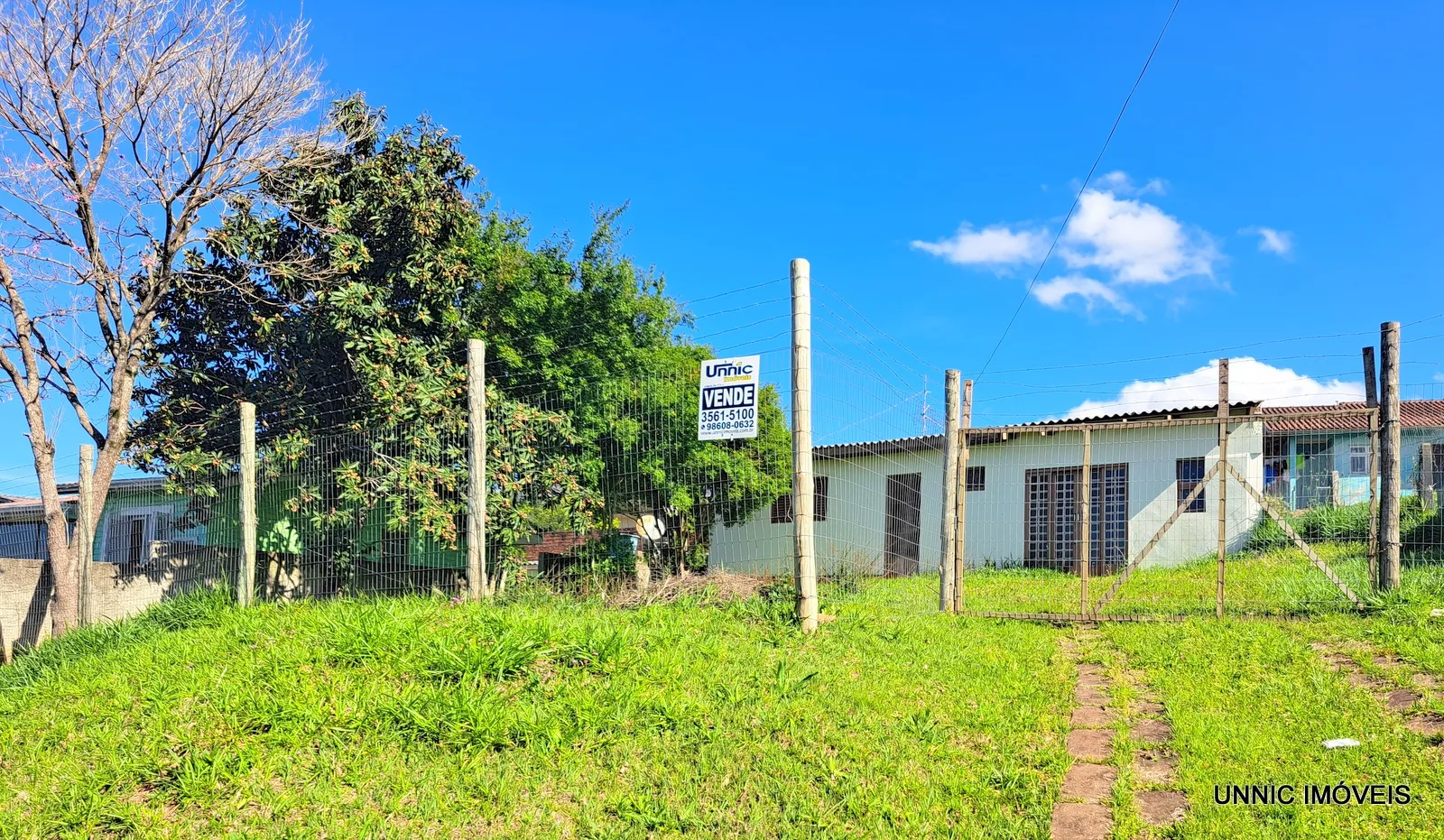 Casa de alvenaria com 50m², sala/cozinha, banheiro, 1 quarto. Terreno medindo 406,09m², sendo 19,35 metros de frente, mais alto que nível da Rua, cercado.