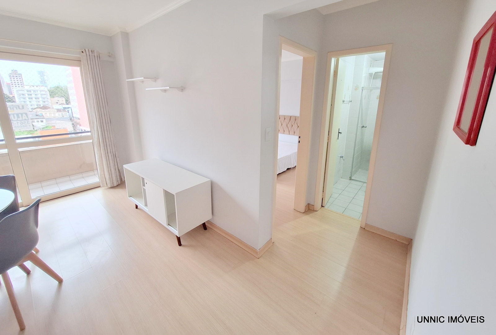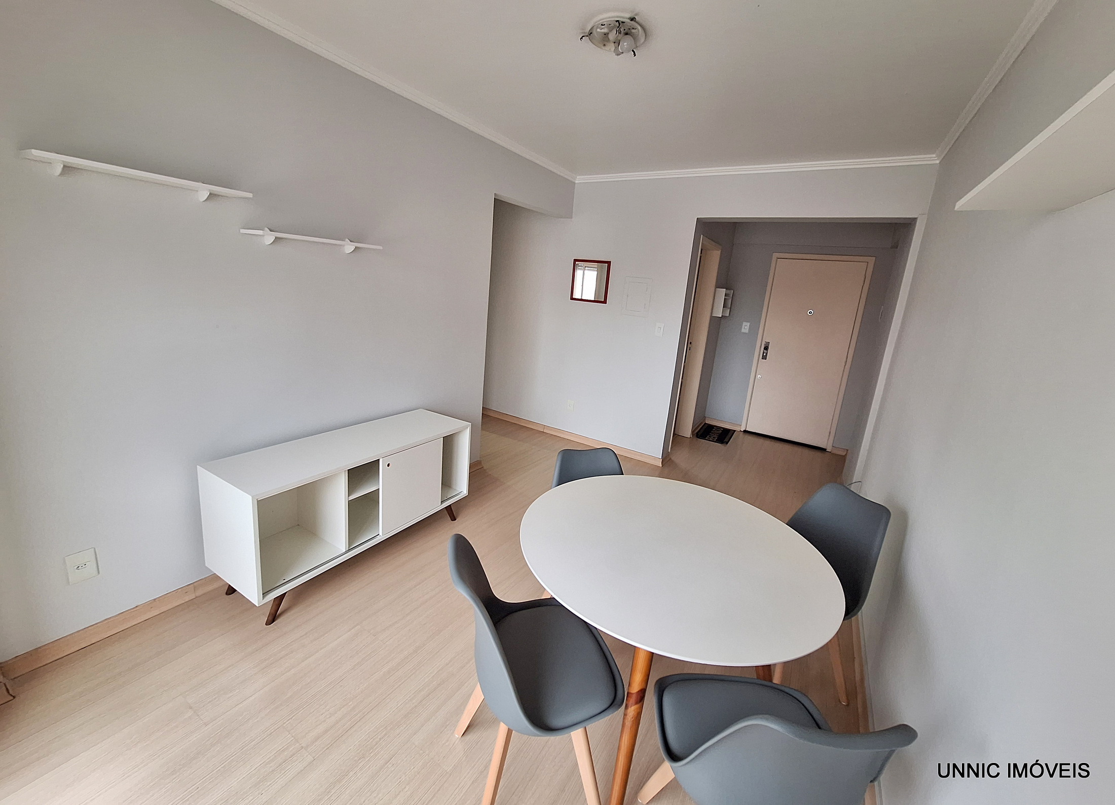 Apartamento mobiliado com 1 dormitório, sala estar/jantar, sacada, cozinha, banheiro, lavanderia.