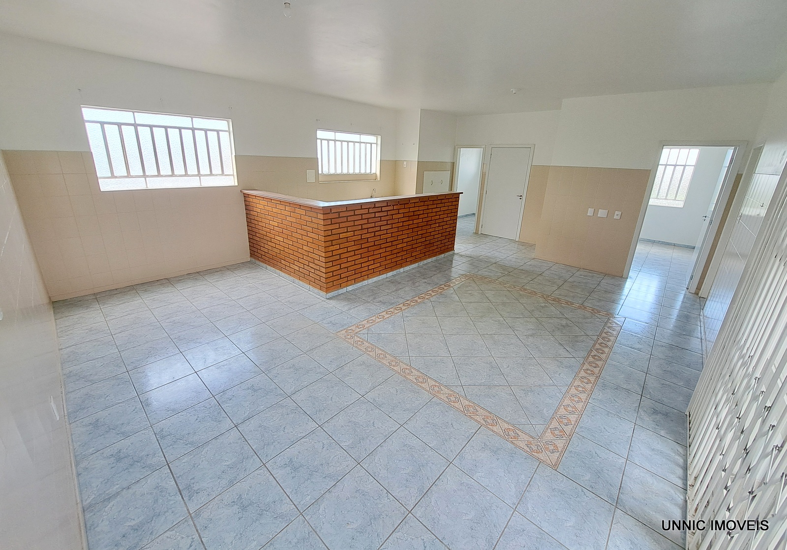 Casa comercial ampla com 4 salas, 2 banheiros, despensa e garagem.