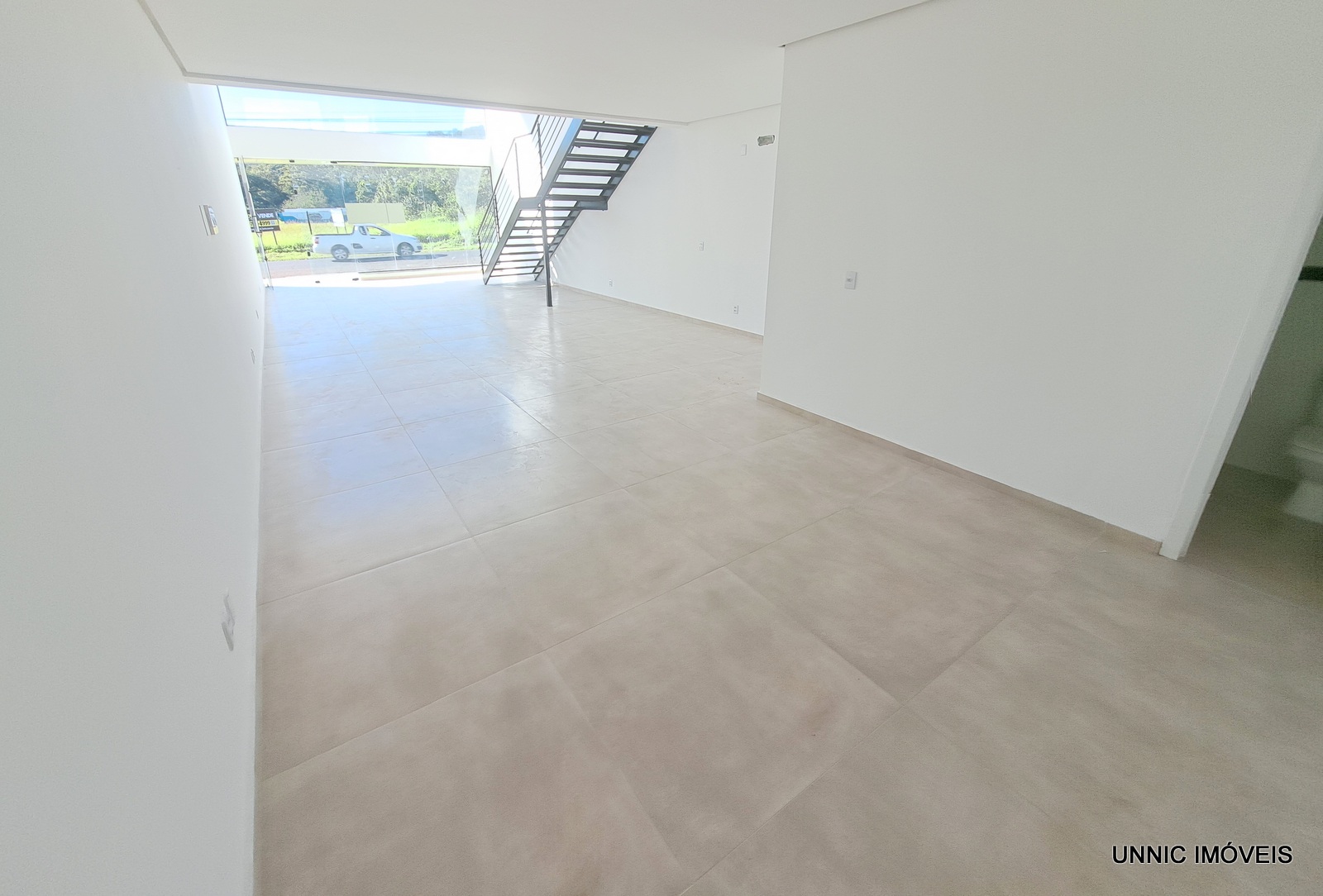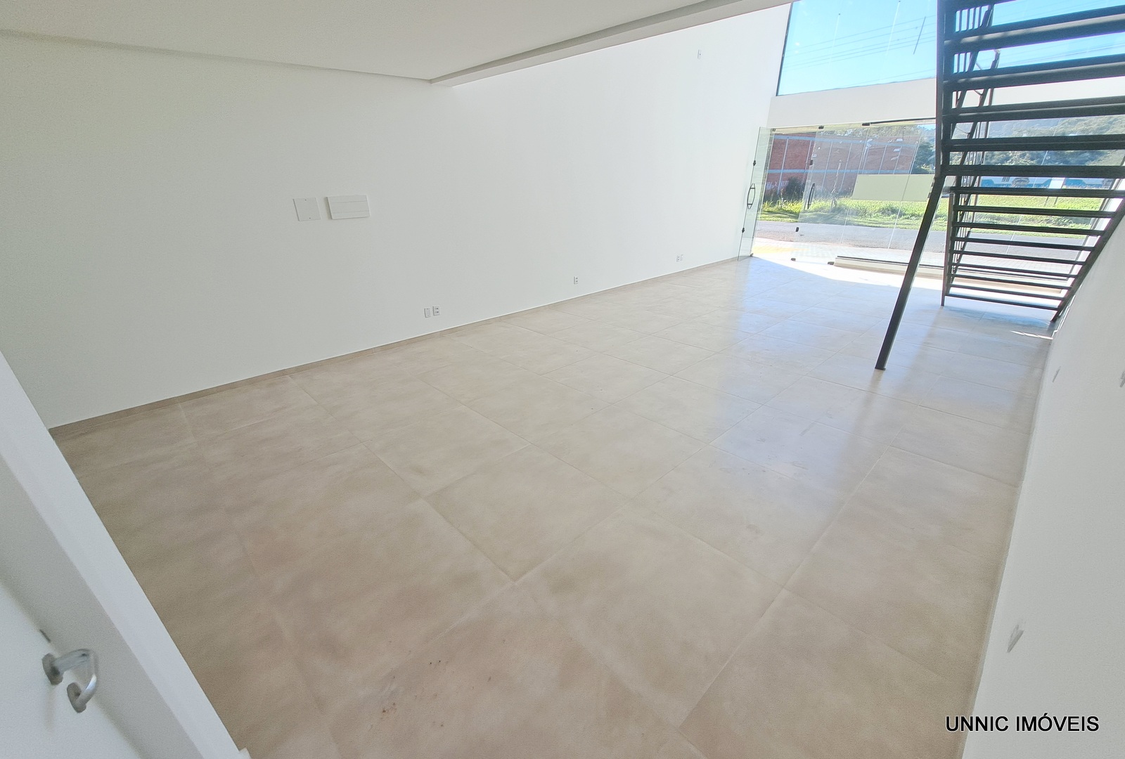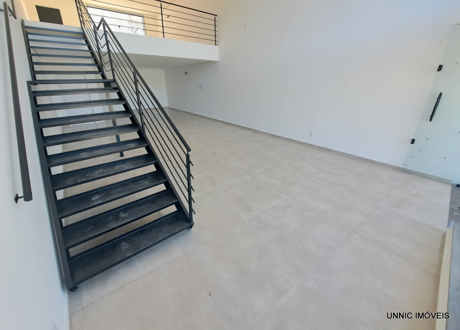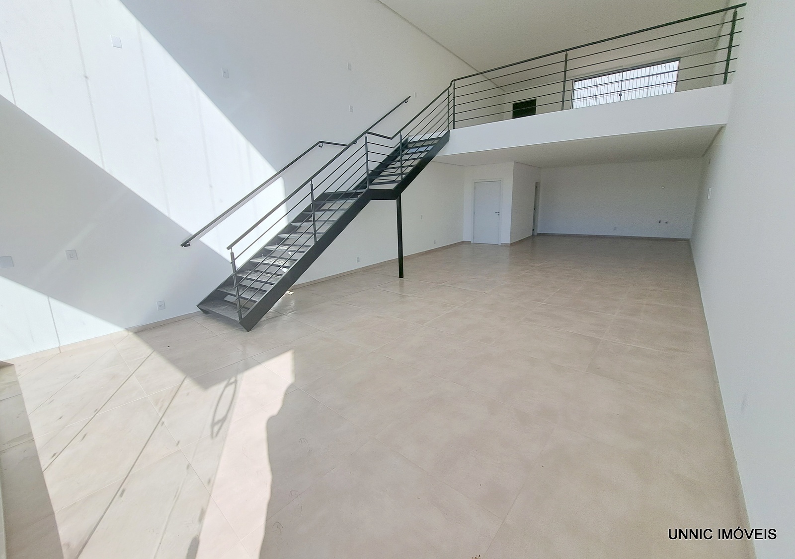 Loja nova de esquina com 128m², mezanino, 2 banheiros, 2 vagas de garagem, vitrine em vidro temperado.