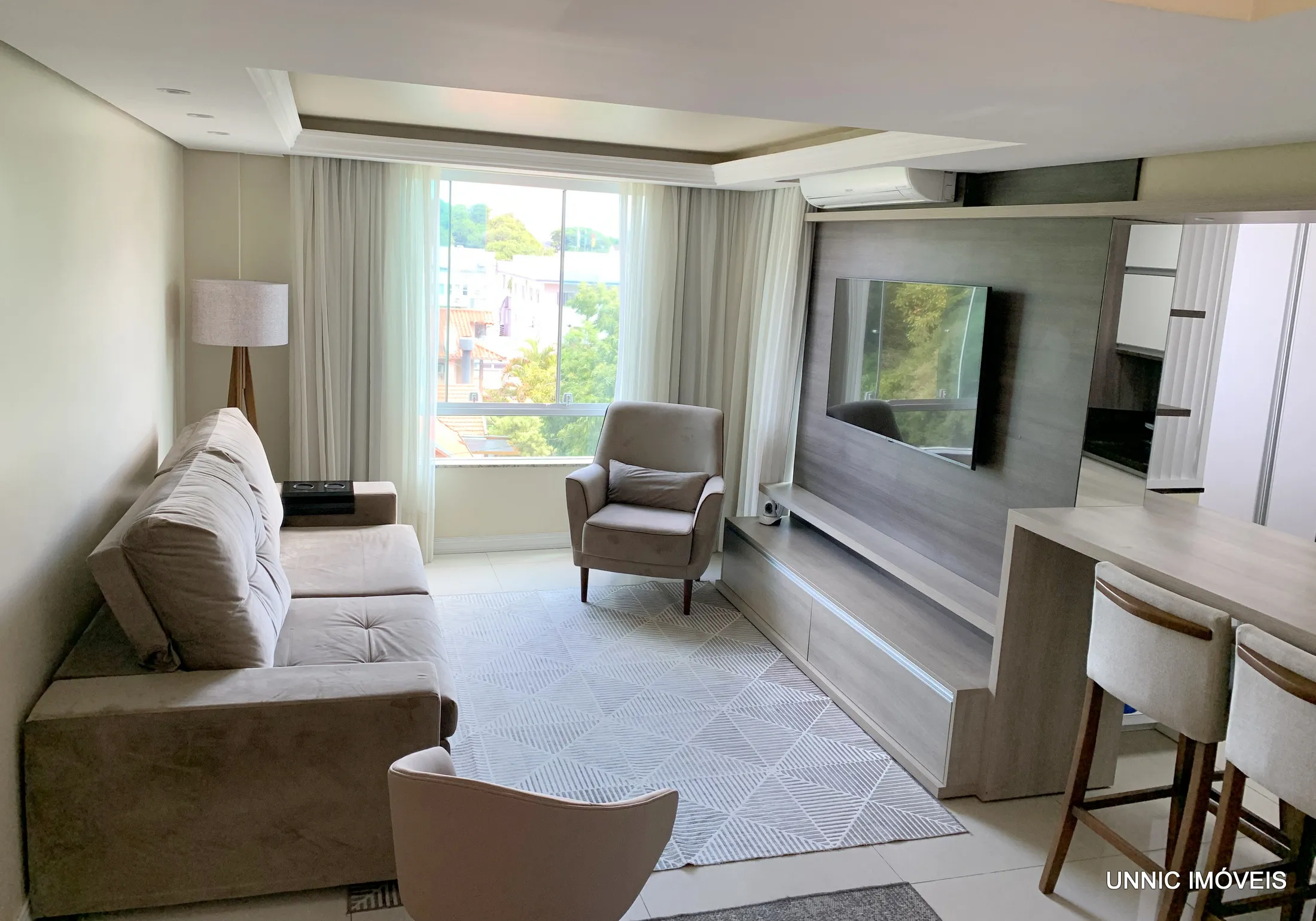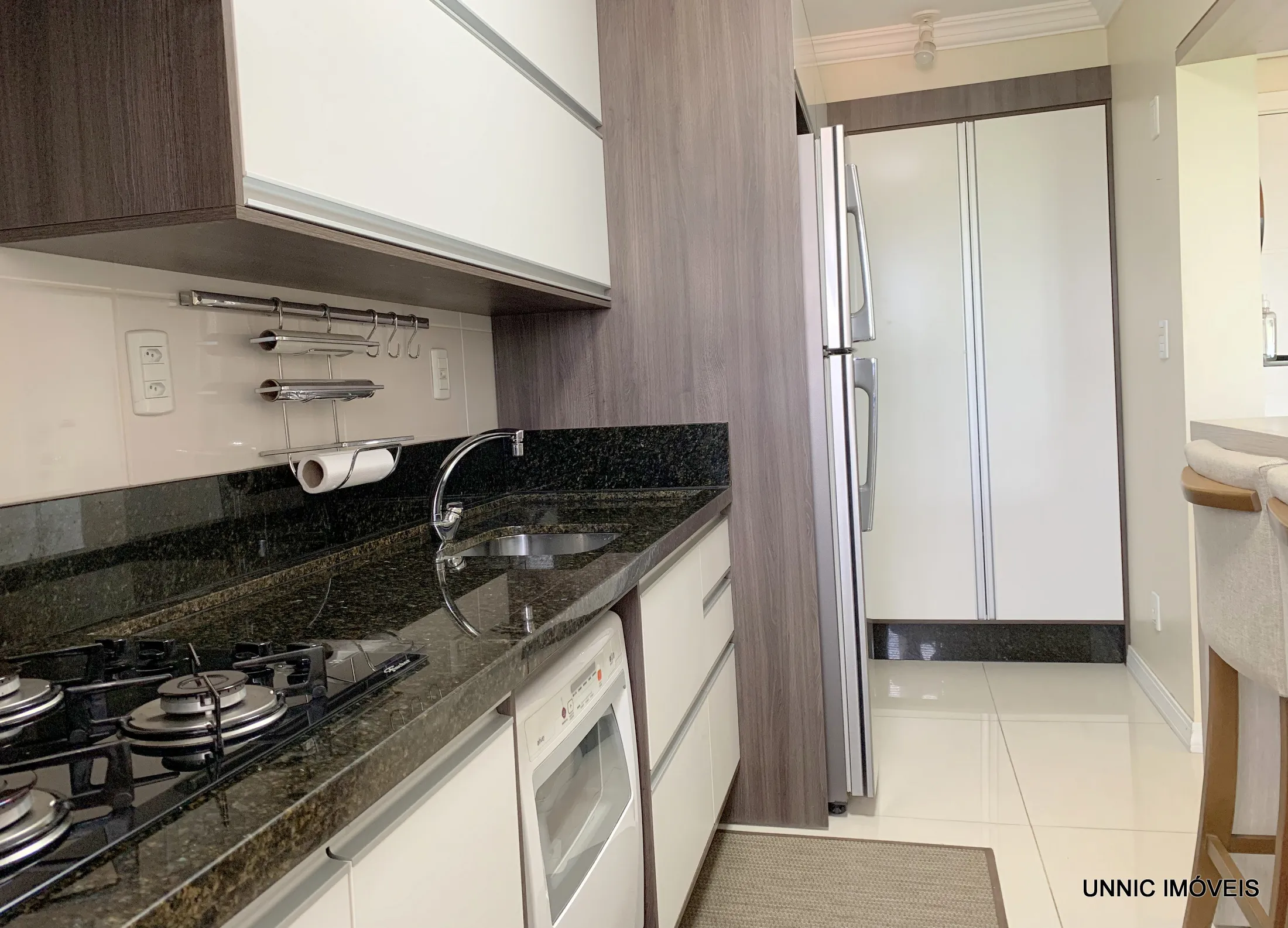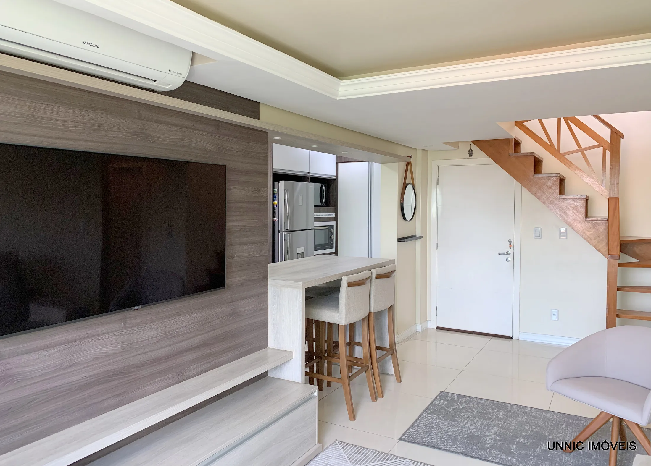 Cobertura com 139m² privativos, 2 dormitórios sendo 1 suíte, sala de estar/jantar integrado com cozinha, lavanderia, 3 banheiros, área com churrasqueira, escritório, sacada com vista, água quente, esperas para ar split, 2 vagas de garagem cobertas. Ficam os móveis sob medida.