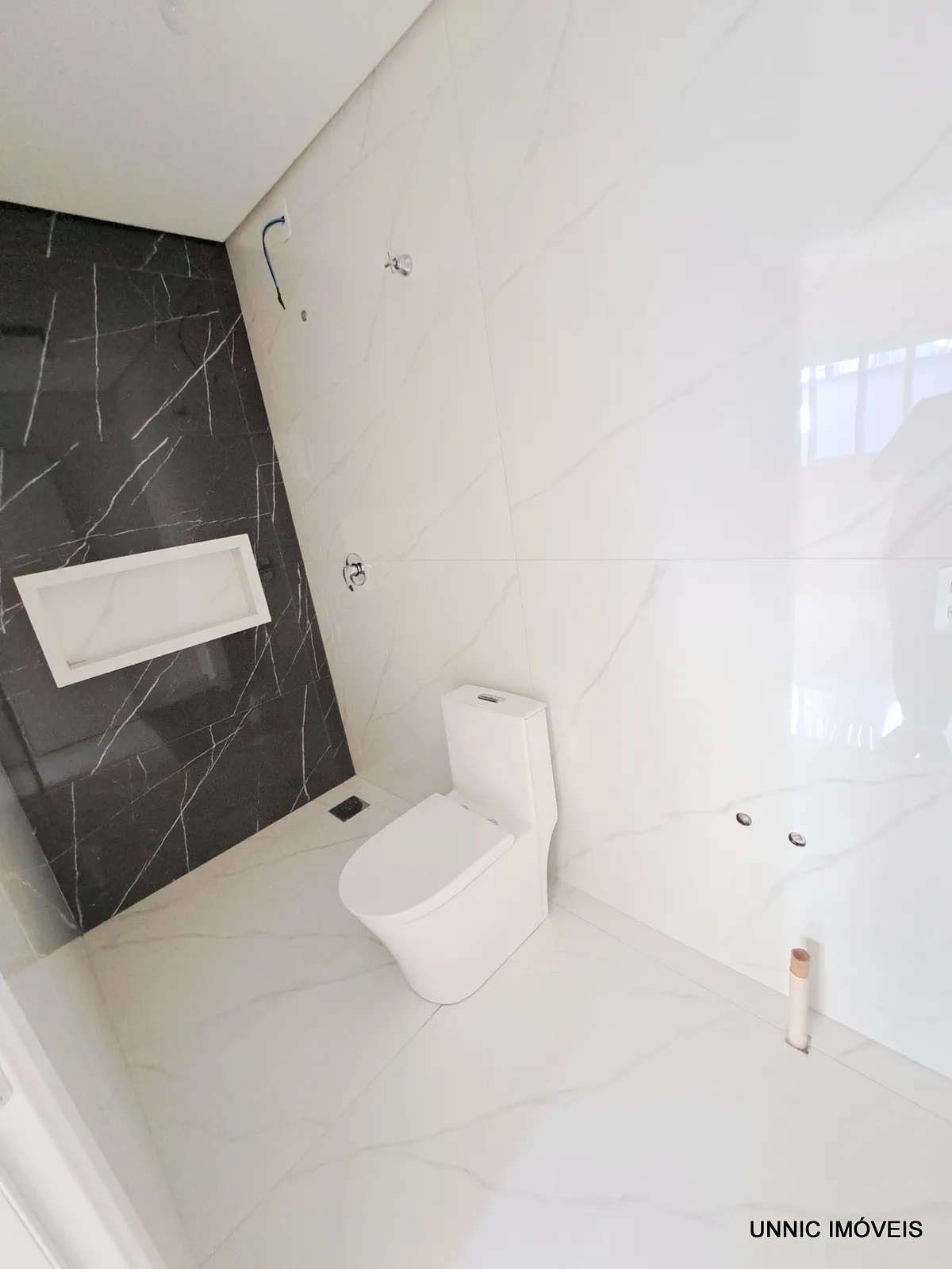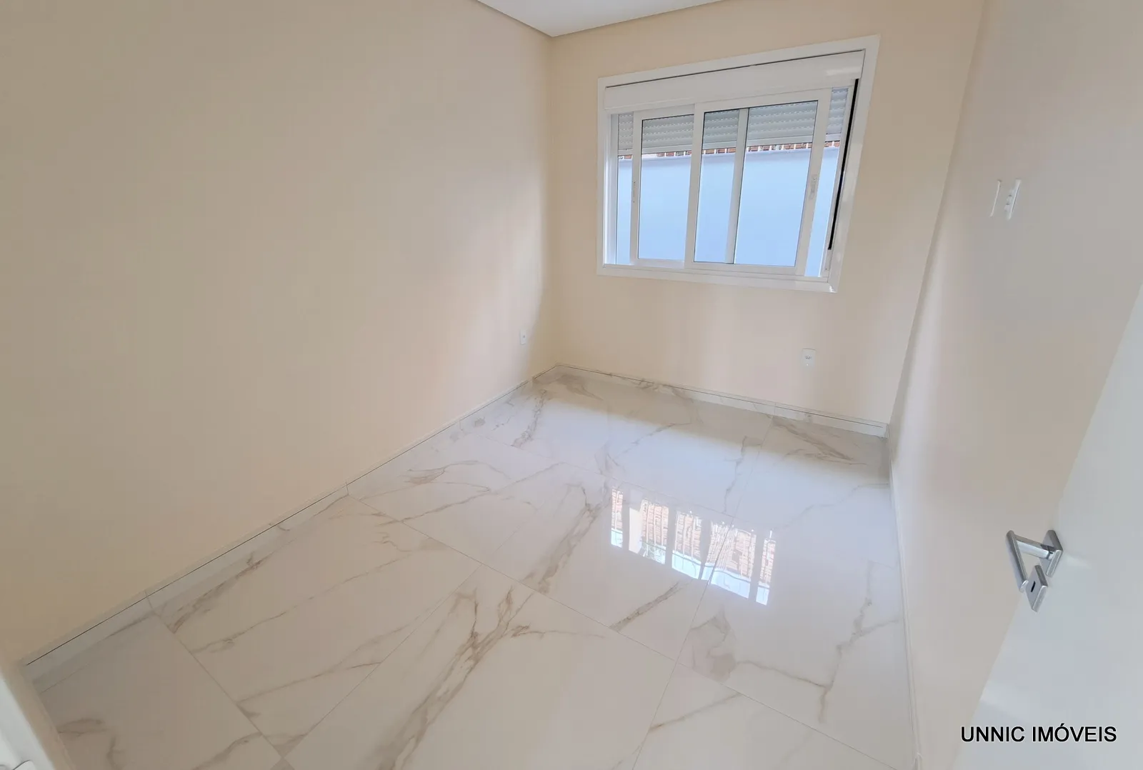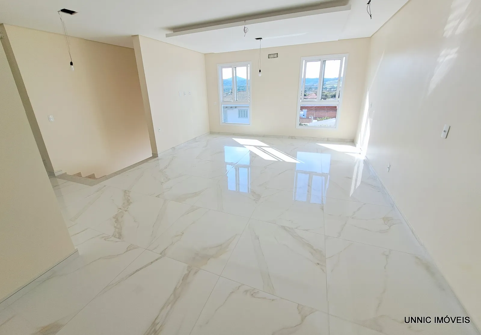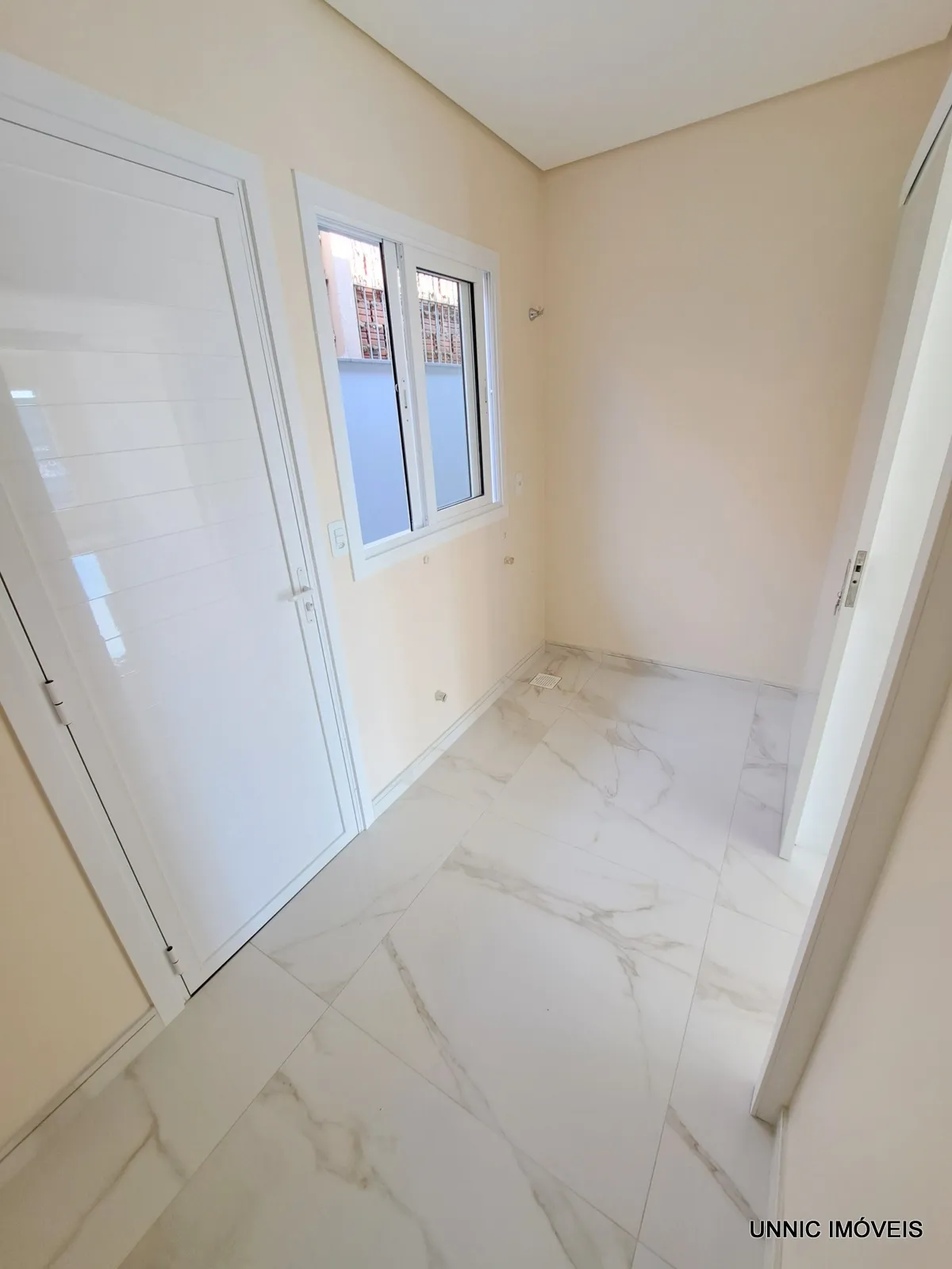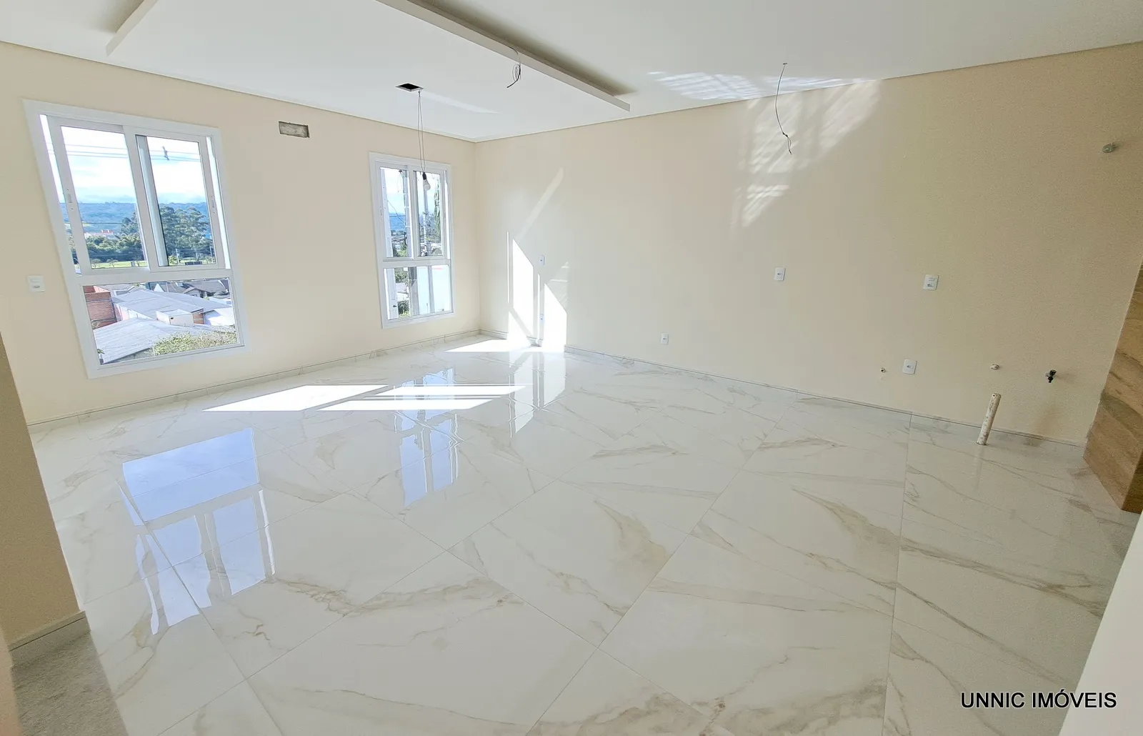 Sobrado novo com 137,11m² privativos, 3 dormitórios sendo 1 suíte, banheiro social, sala de estar e jantar integrado com cozinha, churrasqueira, lavanderia, garagem para 2 carros lado a lado, portão eletrônico, calçada. Terreno todo murado e gradeado na frente.