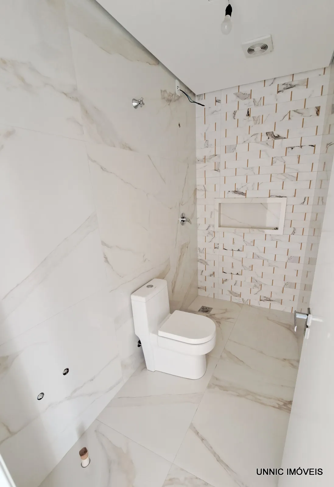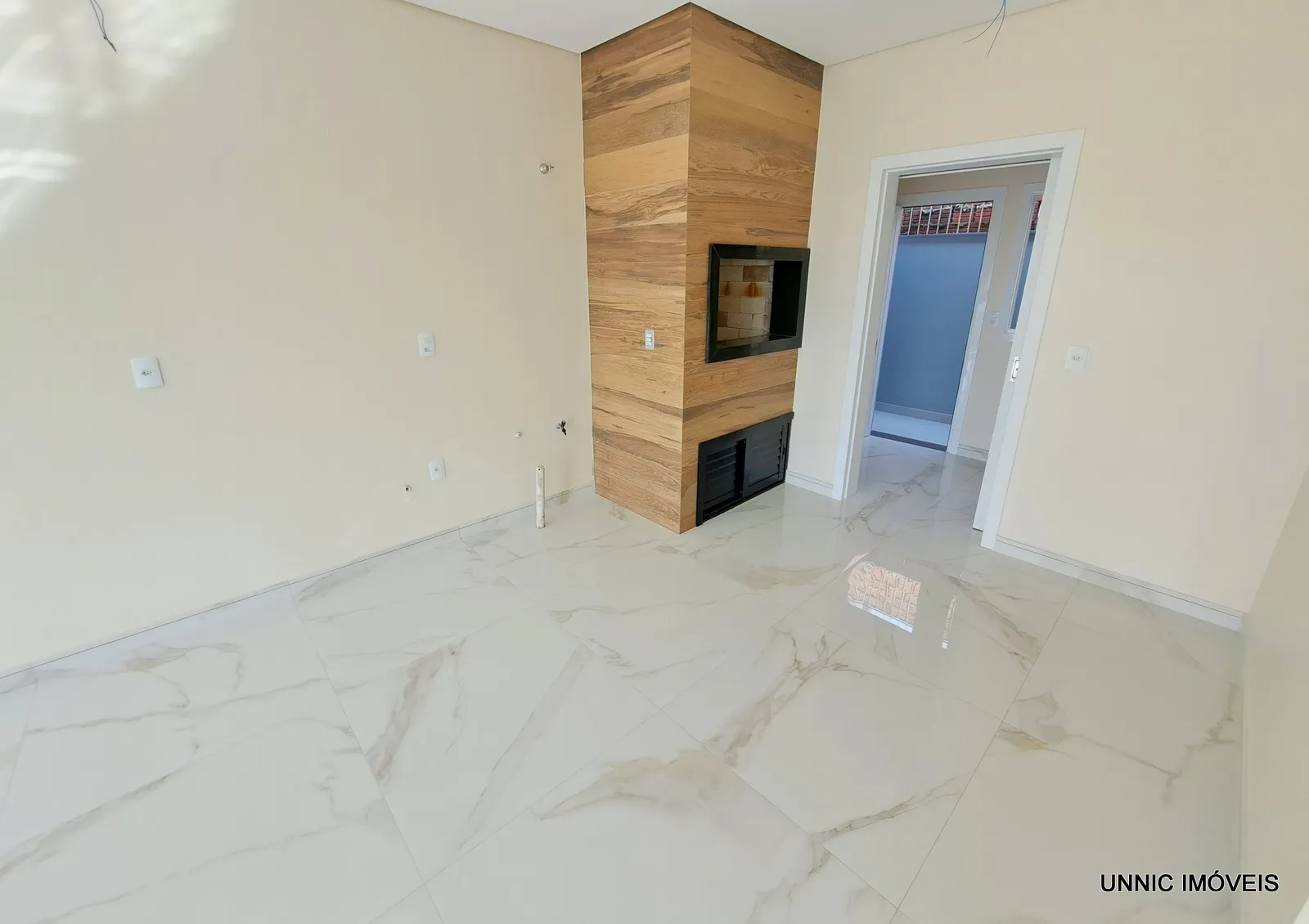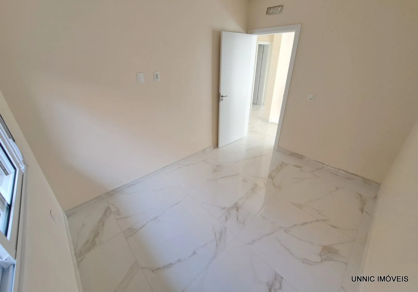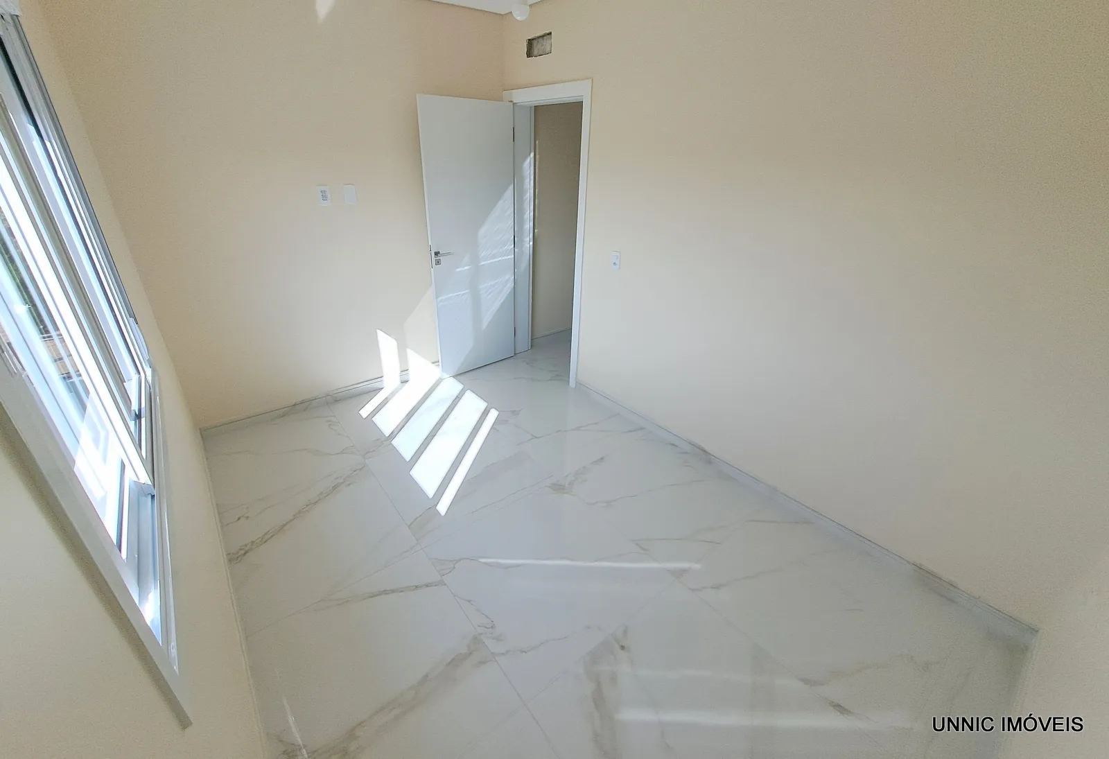 Sobrado novo com 137,11m² privativos, 3 dormitórios sendo 1 suíte, banheiro social, sala de estar e jantar integrado com cozinha, churrasqueira, lavanderia, garagem para 2 carros lado a lado, portão eletrônico, calçada. Terreno todo murado e gradeado na frente.