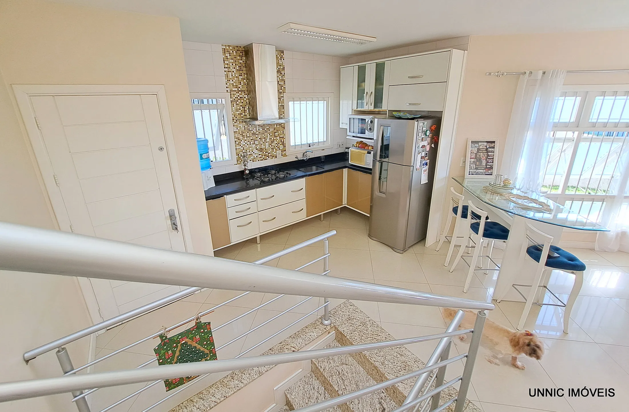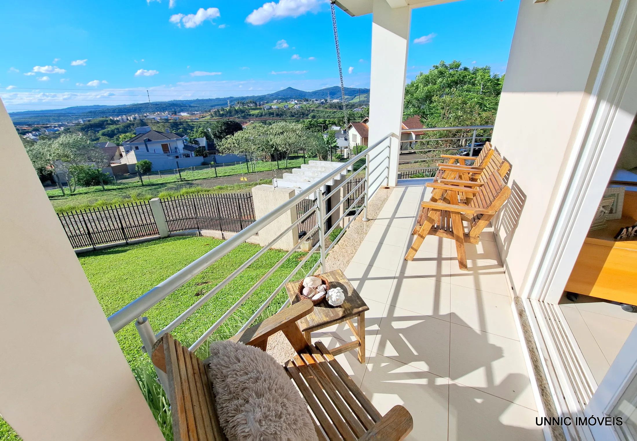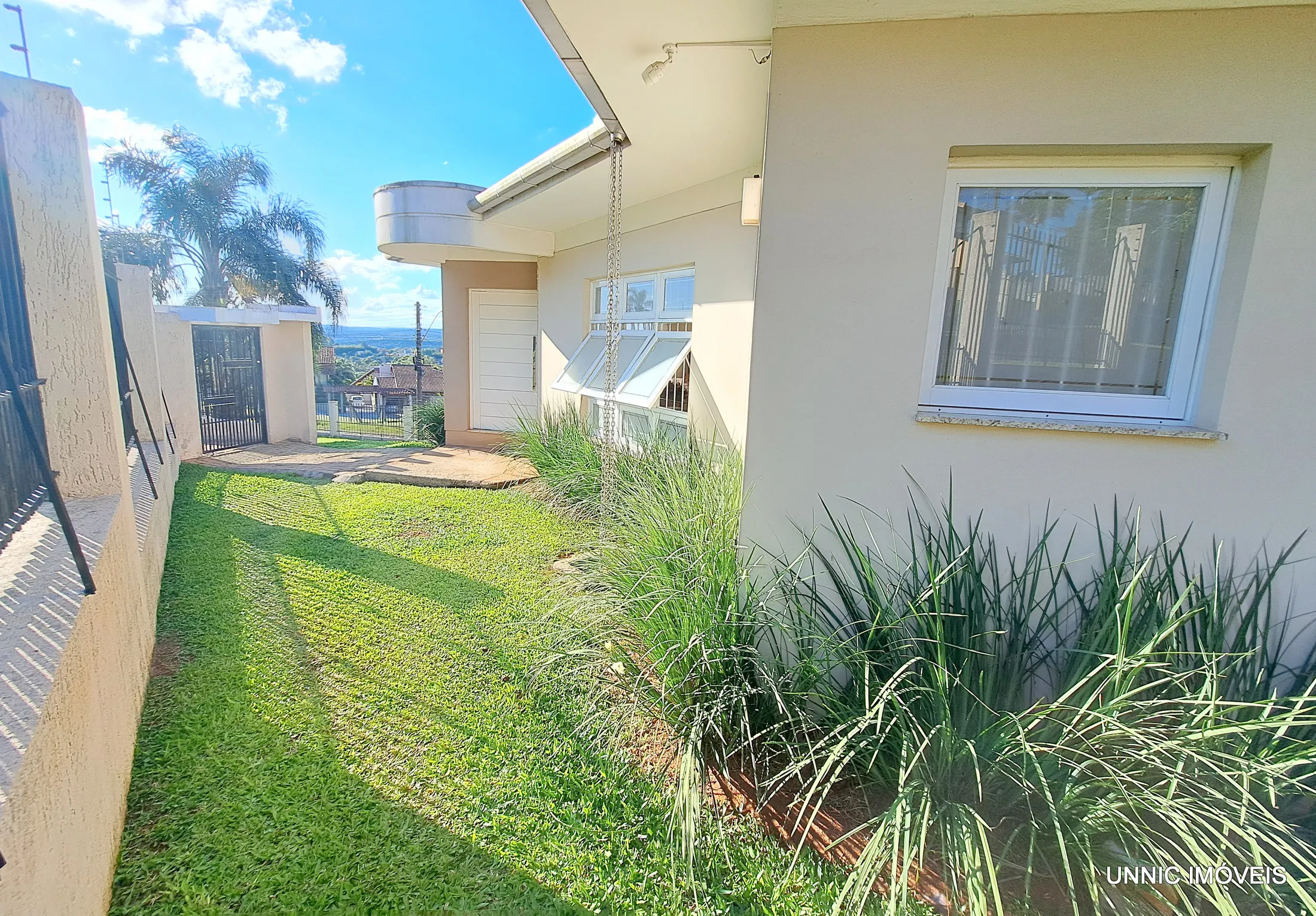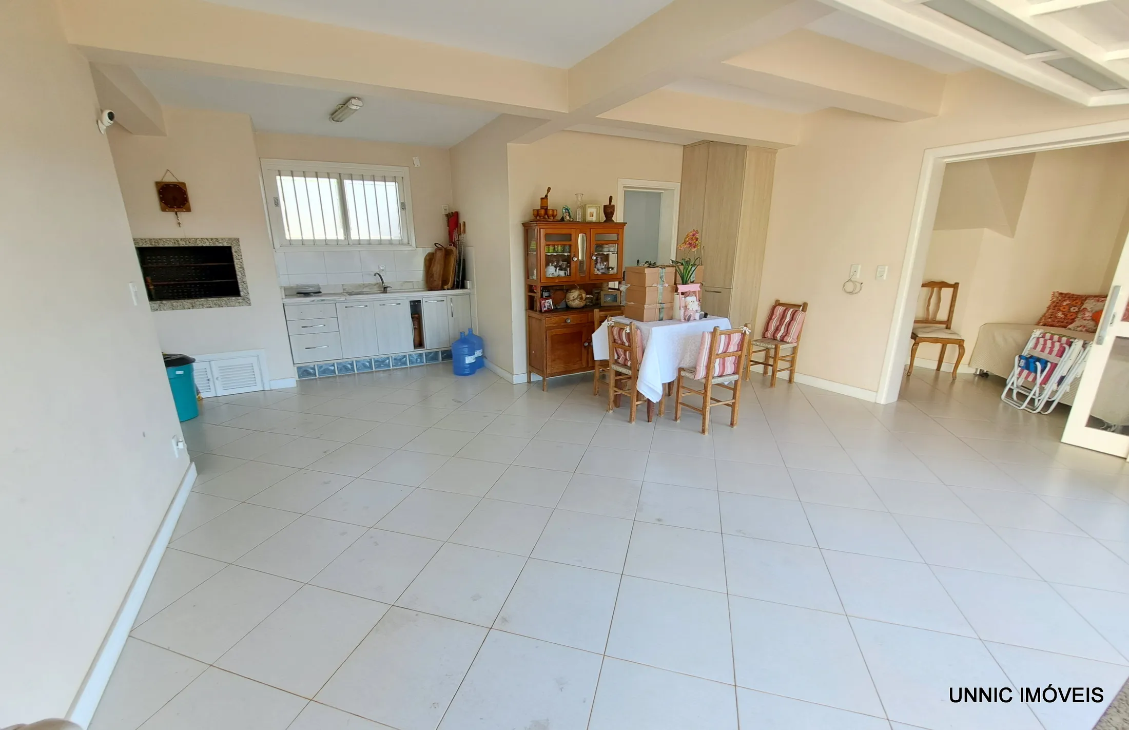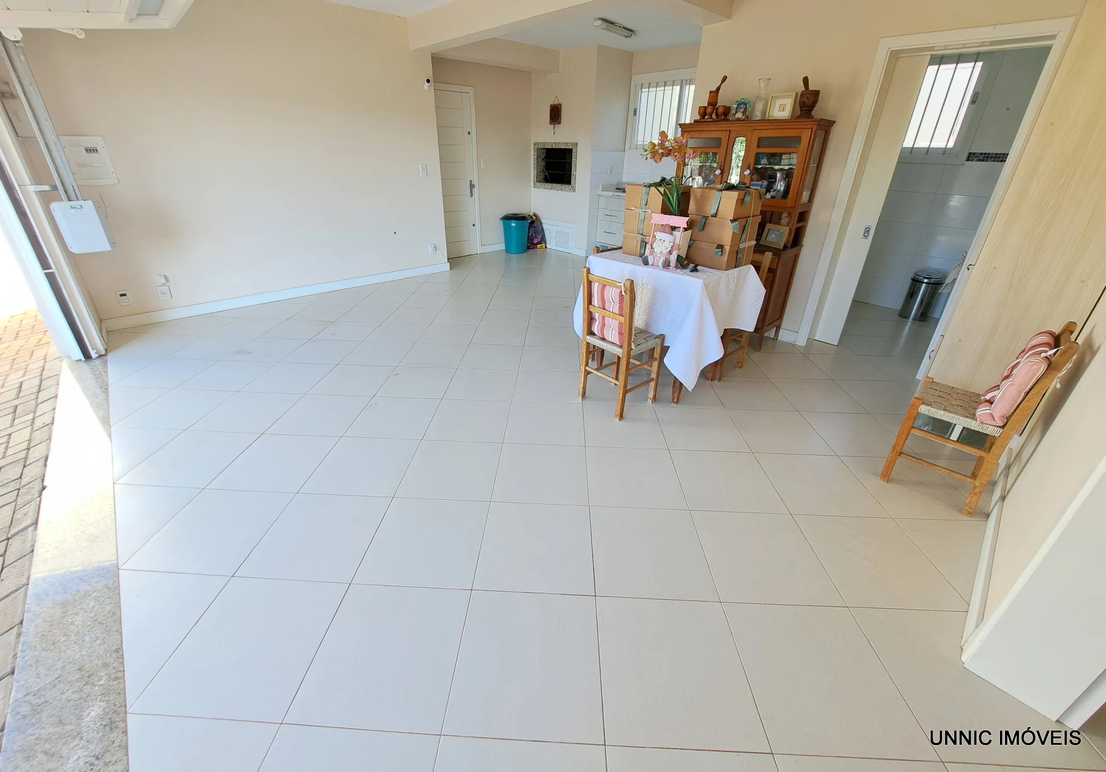 Sobrado de alvenaria com 196,67m², 3 dormitórios sendo 1 suíte, sala de estar e jantar, cozinha, sacada aberta, 2 banheiros, lavanderia, garagem ampla para 2 acrros lado a lado com churrasqueira e pia, água quente, alarme, cerca elétrica, porão/despensa. Terreno de esquina medindo 560m², todo murado, gradeado com 2 portões eletrônicos, calçada, jardim, gramado amplo.
