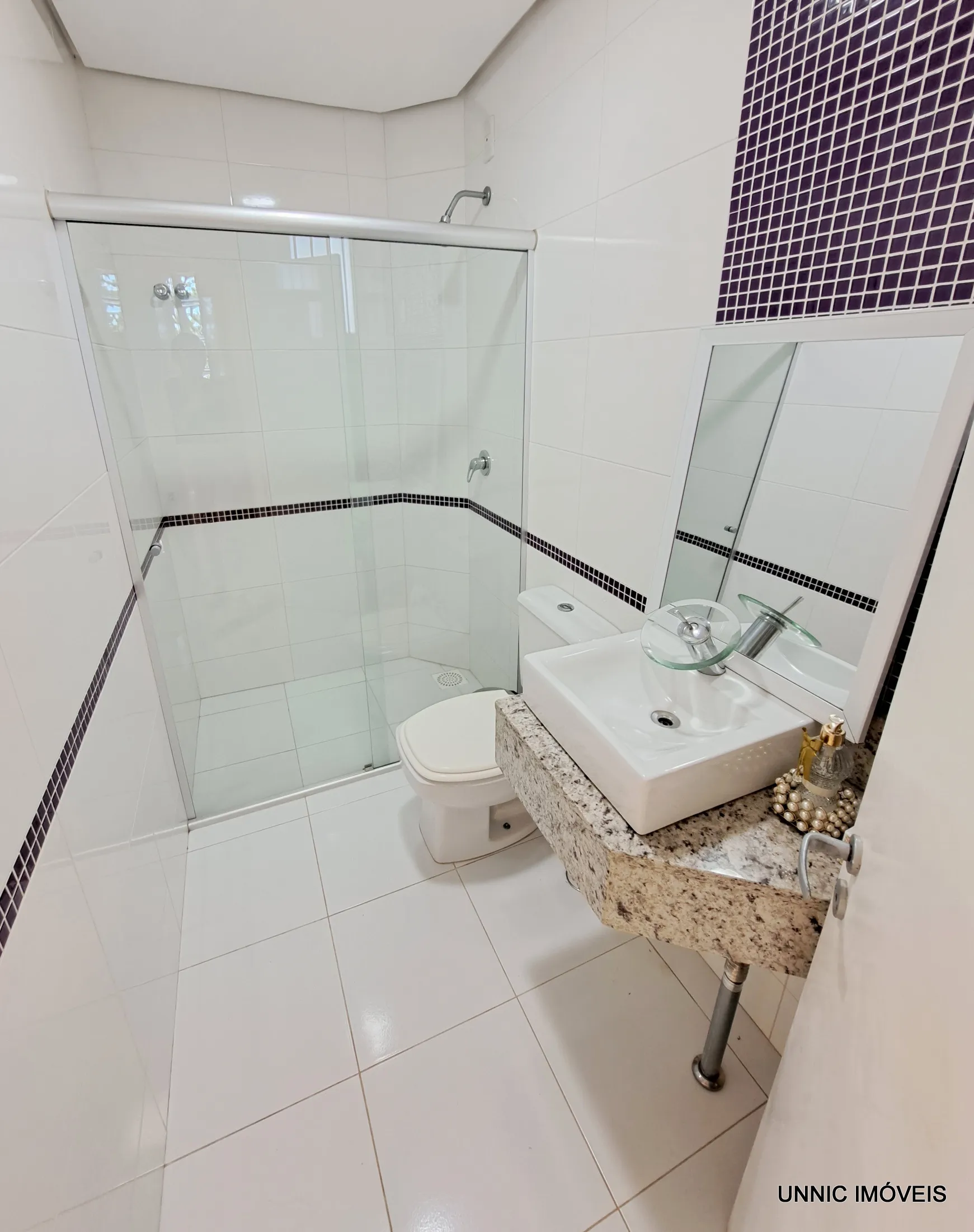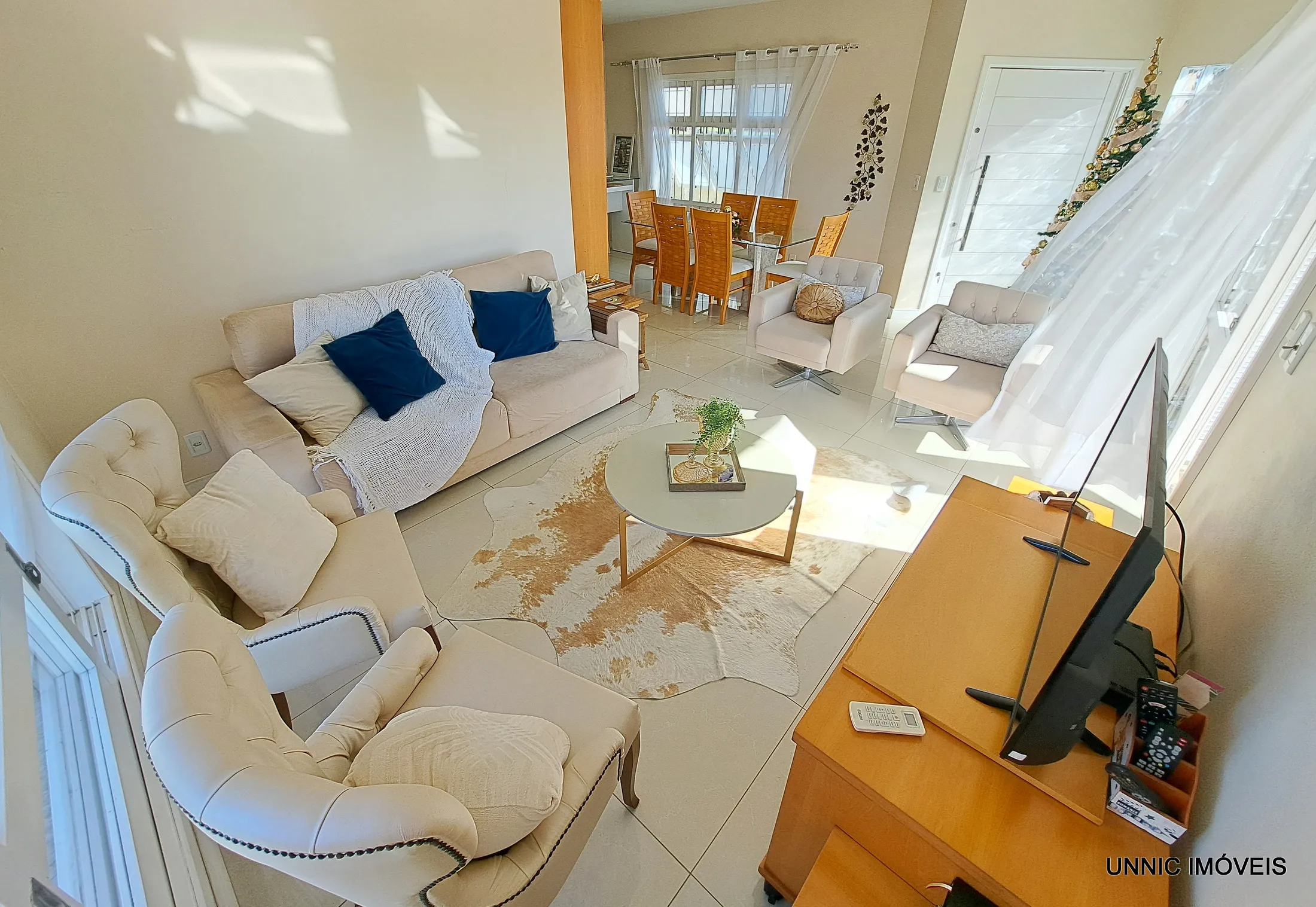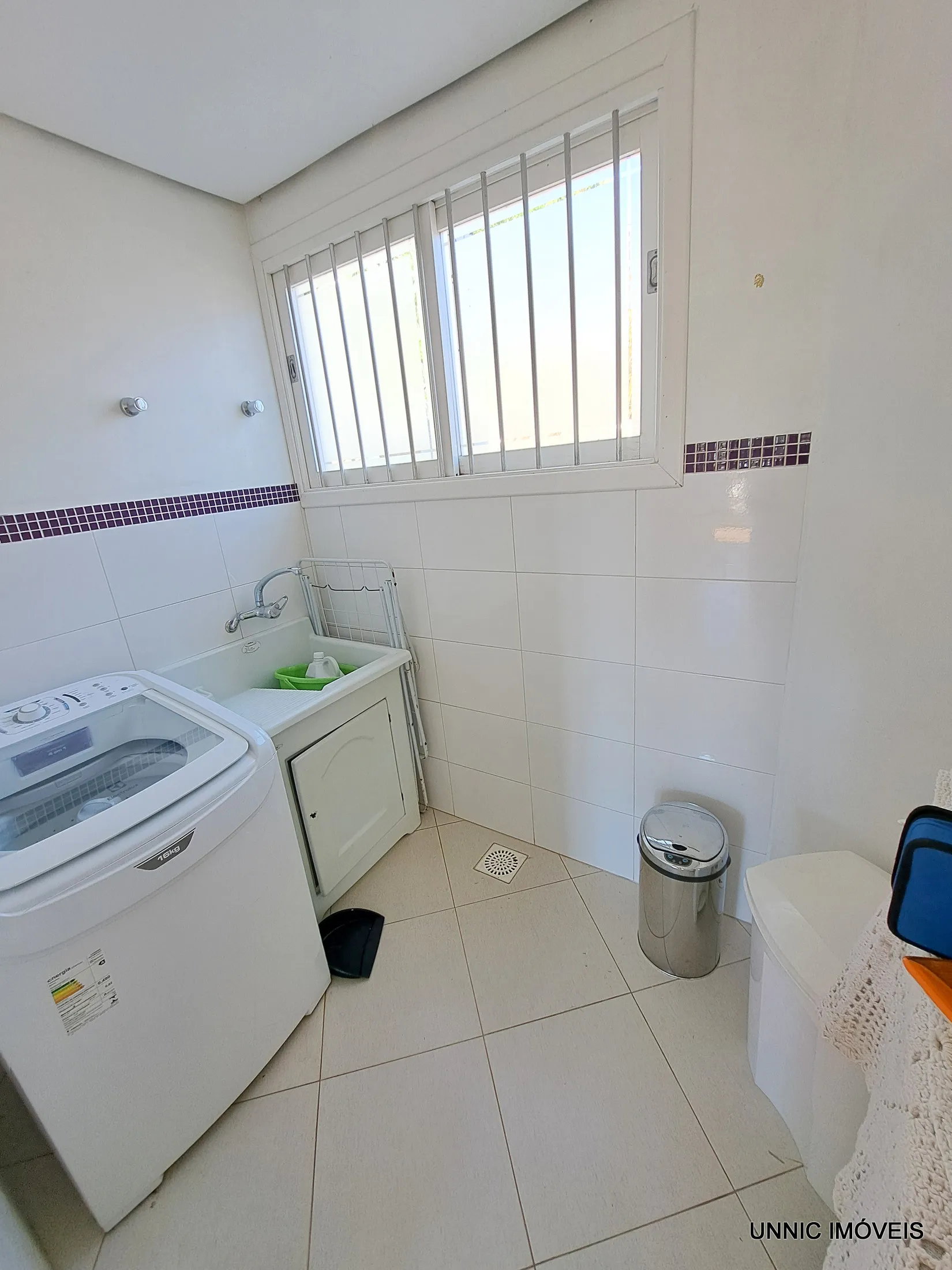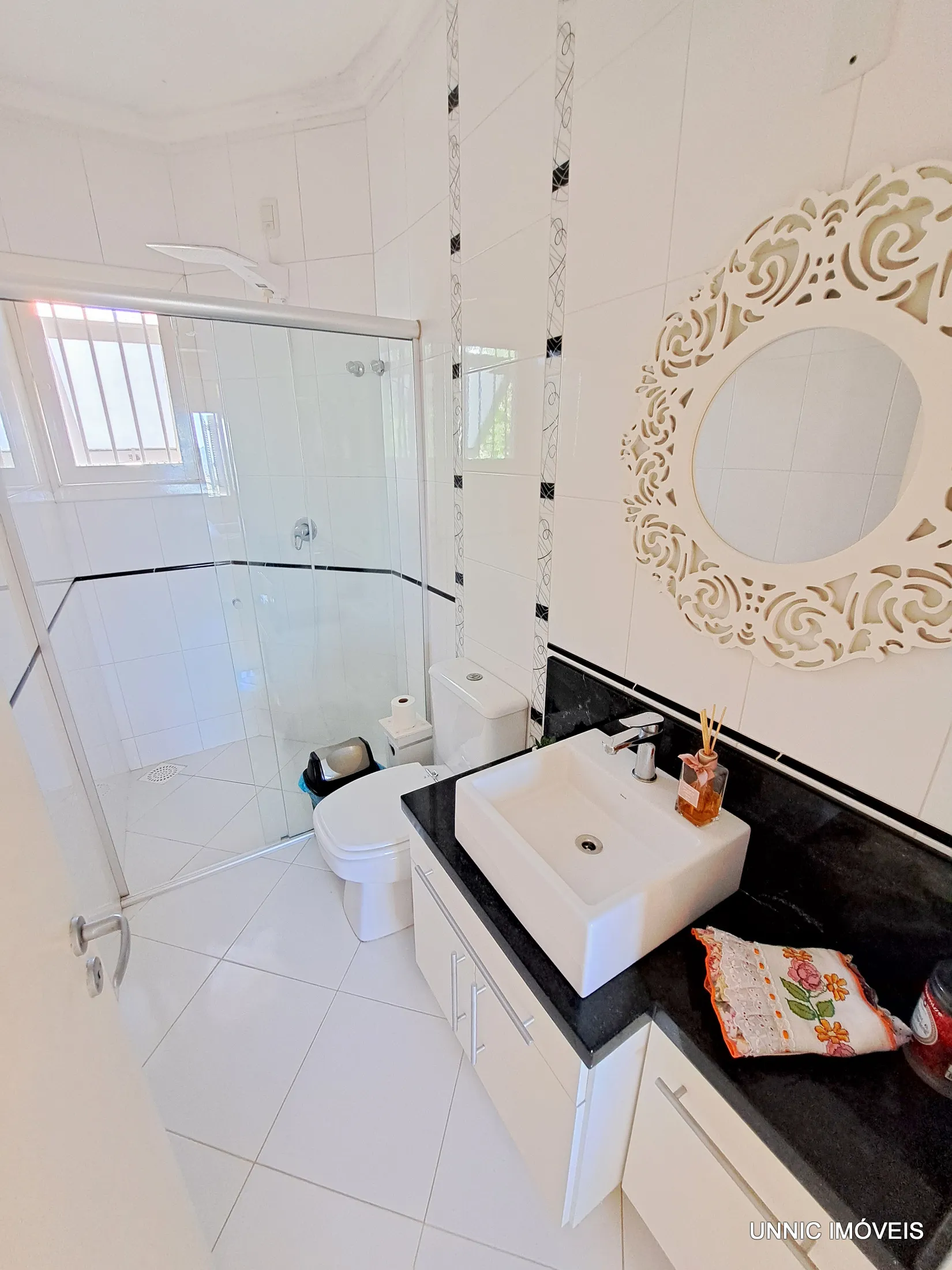Sobrado de alvenaria com 196,67m², 3 dormitórios sendo 1 suíte, sala de estar e jantar, cozinha, sacada aberta, 2 banheiros, lavanderia, garagem ampla para 2 acrros lado a lado com churrasqueira e pia, água quente, alarme, cerca elétrica, porão/despensa. Terreno de esquina medindo 560m², todo murado, gradeado com 2 portões eletrônicos, calçada, jardim, gramado amplo.