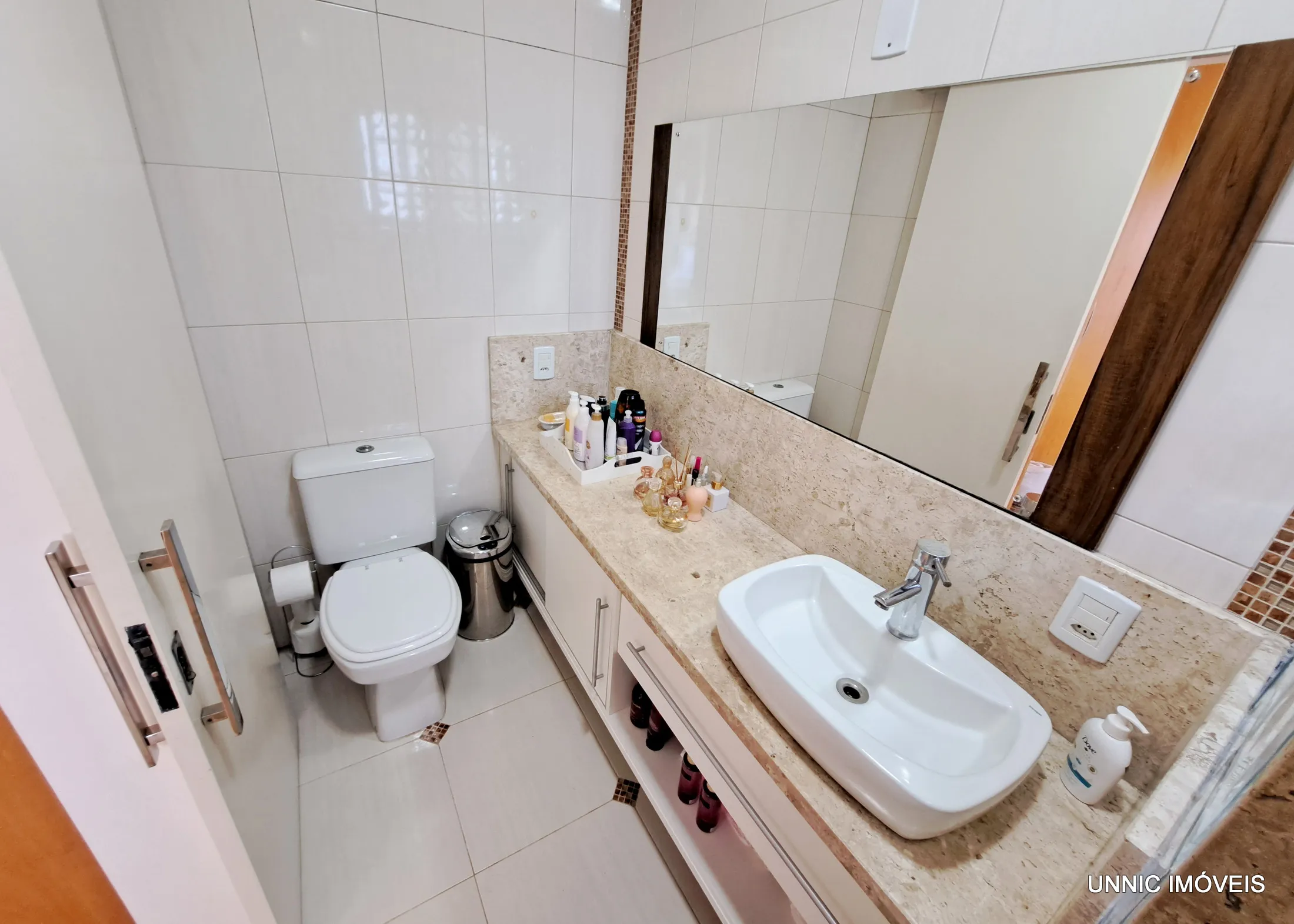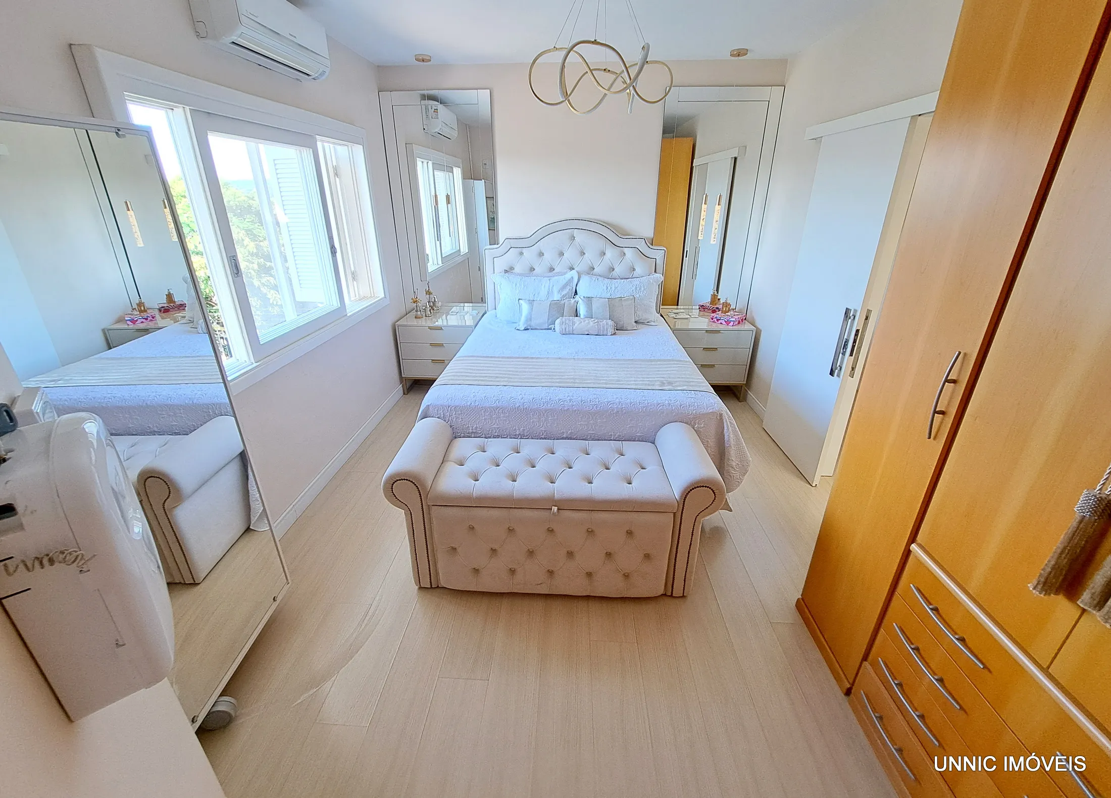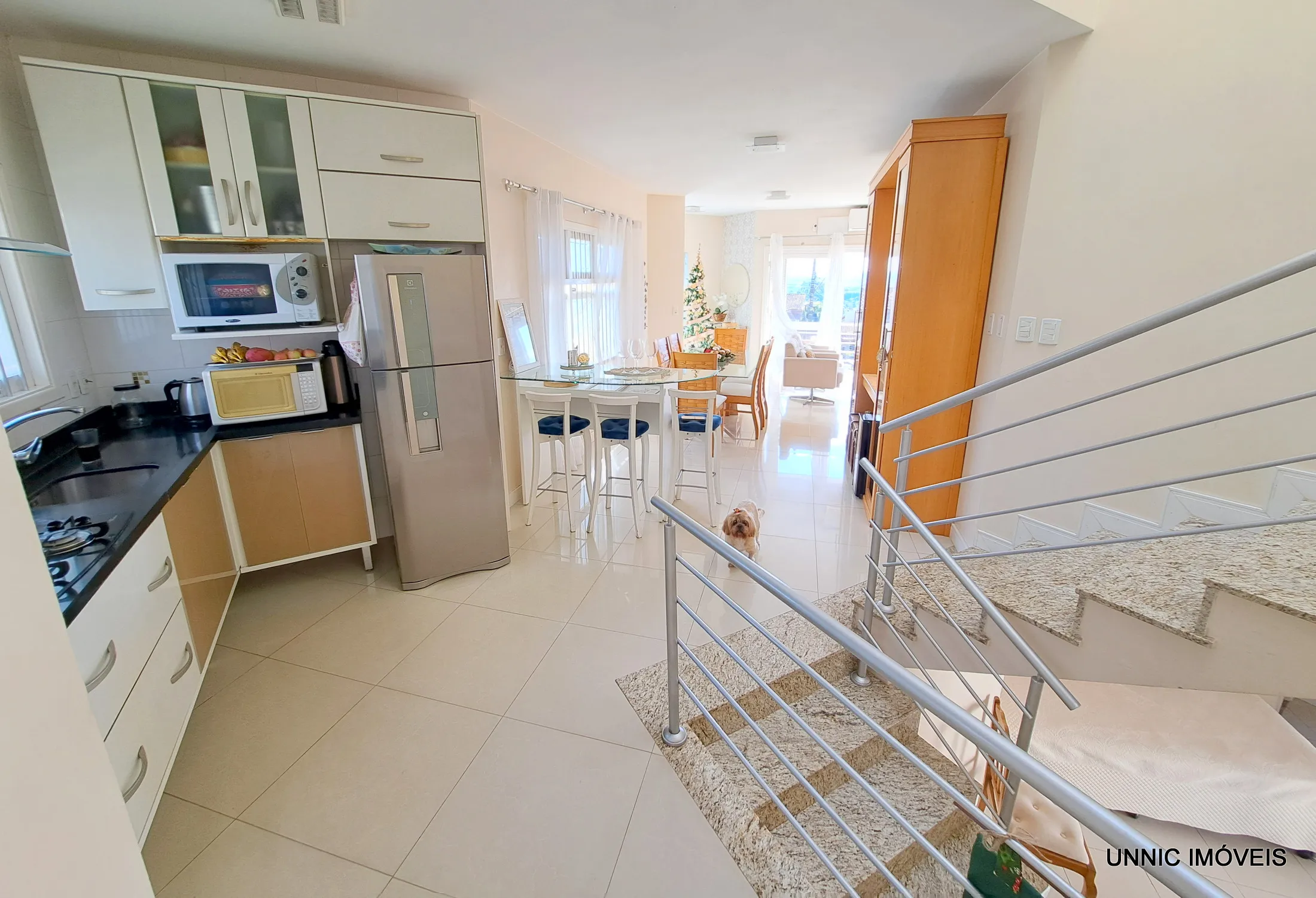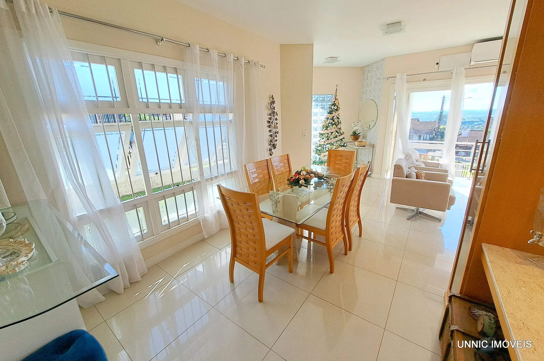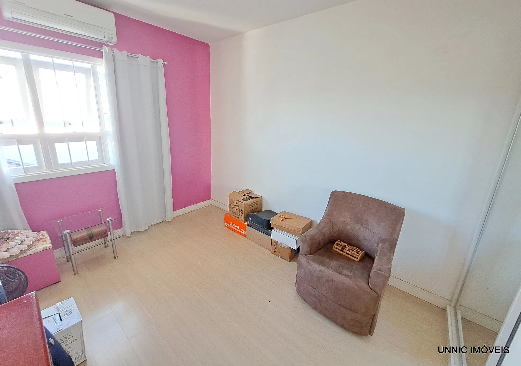 Sobrado de alvenaria com 196,67m², 3 dormitórios sendo 1 suíte, sala de estar e jantar, cozinha, sacada aberta, 2 banheiros, lavanderia, garagem ampla para 2 acrros lado a lado com churrasqueira e pia, água quente, alarme, cerca elétrica, porão/despensa. Terreno de esquina medindo 560m², todo murado, gradeado com 2 portões eletrônicos, calçada, jardim, gramado amplo.