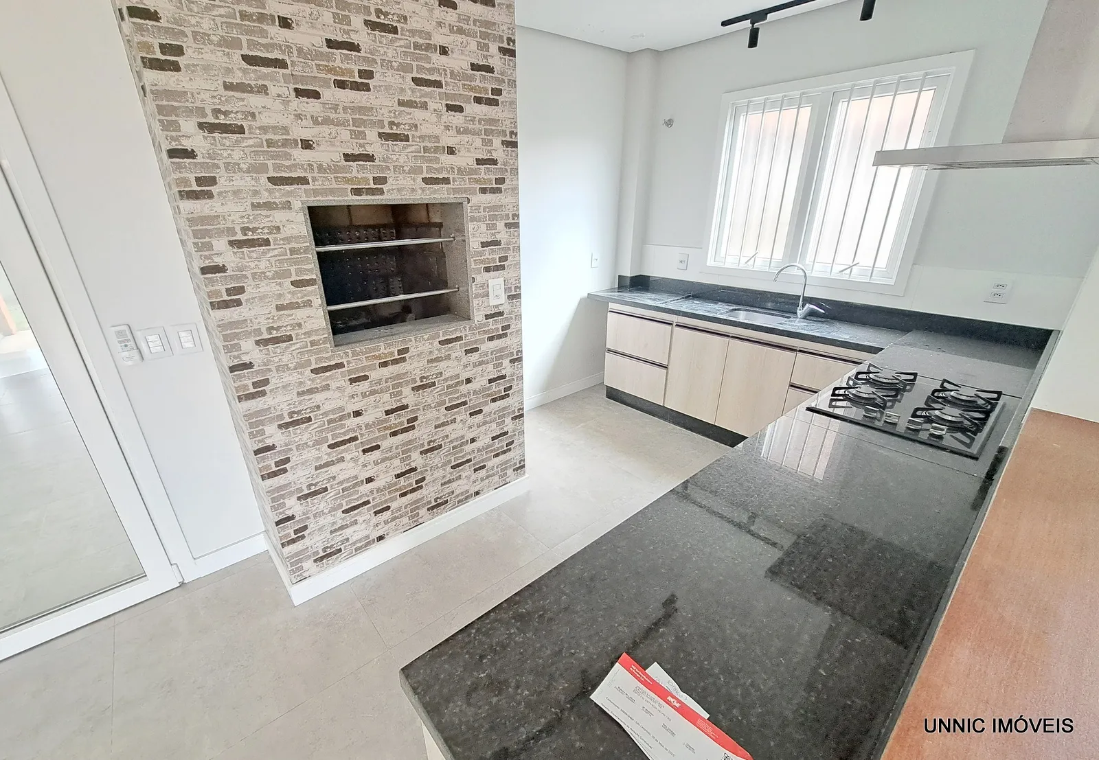 Sobrado com 223,61m² privativos, 3 dormitórios sendo 1 suíte com ampla sacada, 2 banheiros, sala de estar e jantar integrado com cozinha com móveis sob medida, churrasqueira, lavanderia, varanda fechada com vidro temperado, garagem para 2 carros lado a lado. Terreno mais alto que nível da Rua medindo 386,49m² sendo 12,00 metros de frente, todo murado com portão eletrônico.