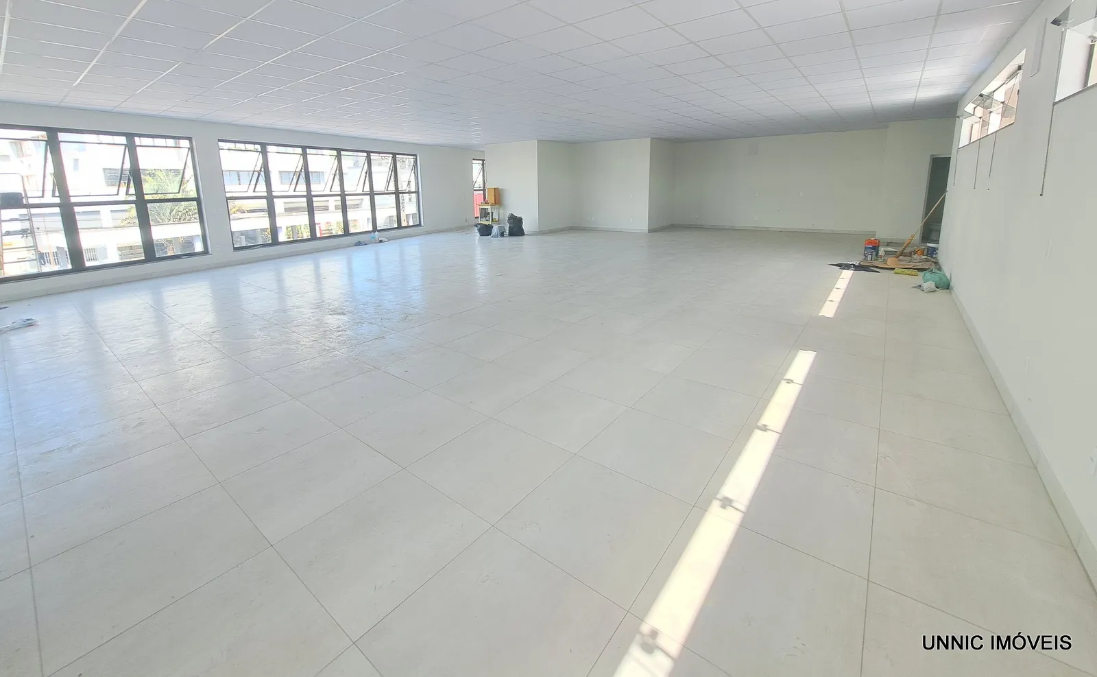 Sala comercial nova com 228,23m² privativos, com banheiros e depósito.